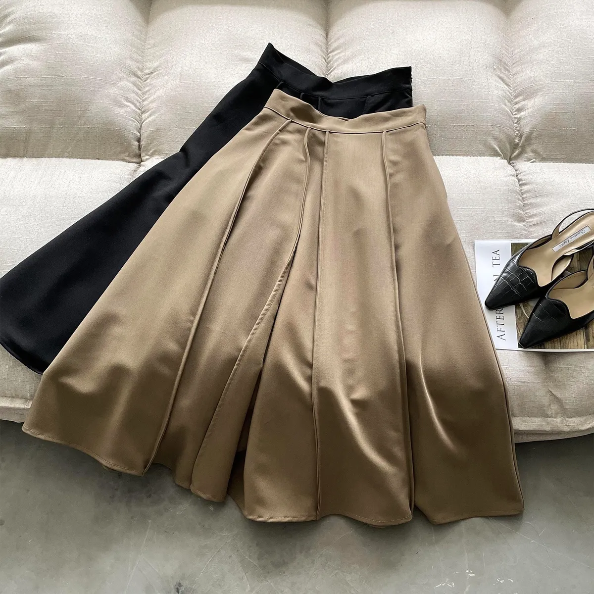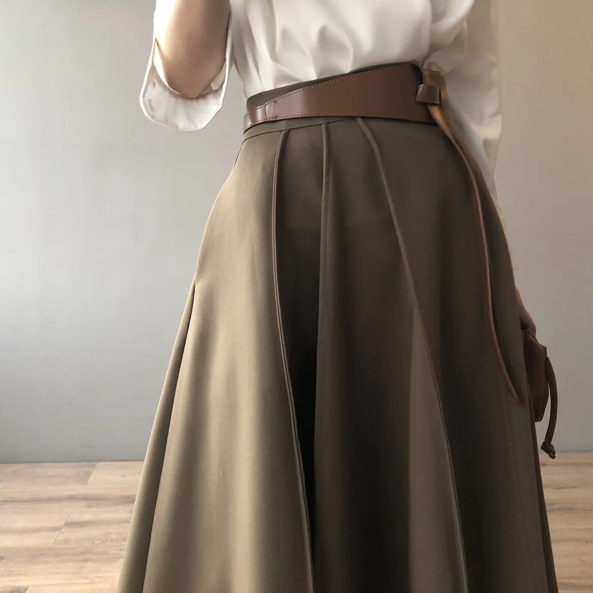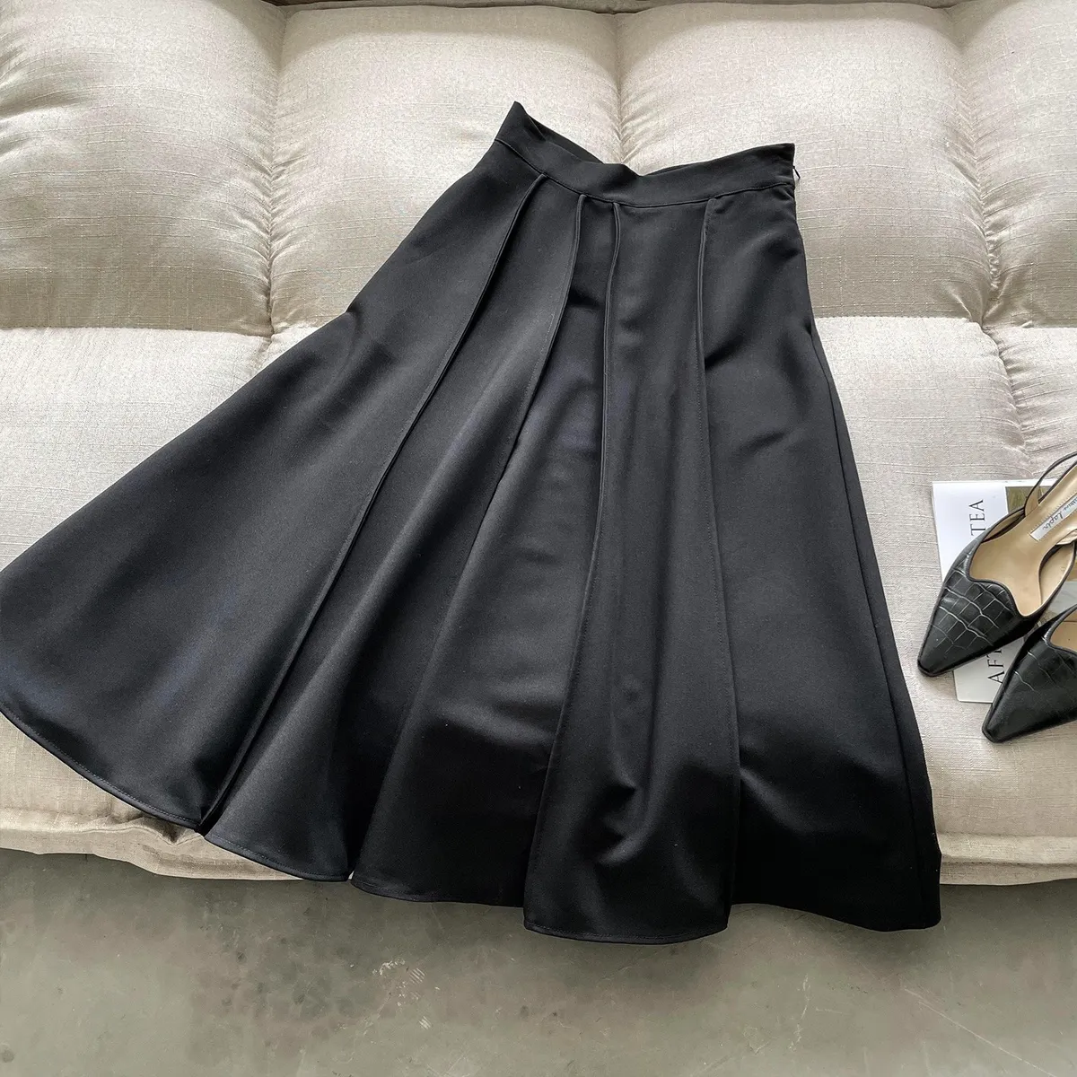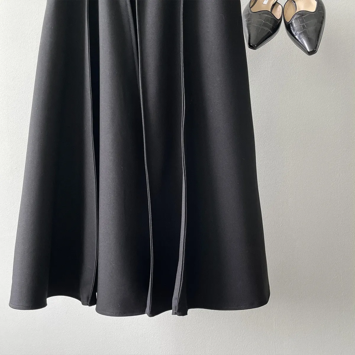 高腰百褶拼接半身裙春夏新款法式赫本風A字裙