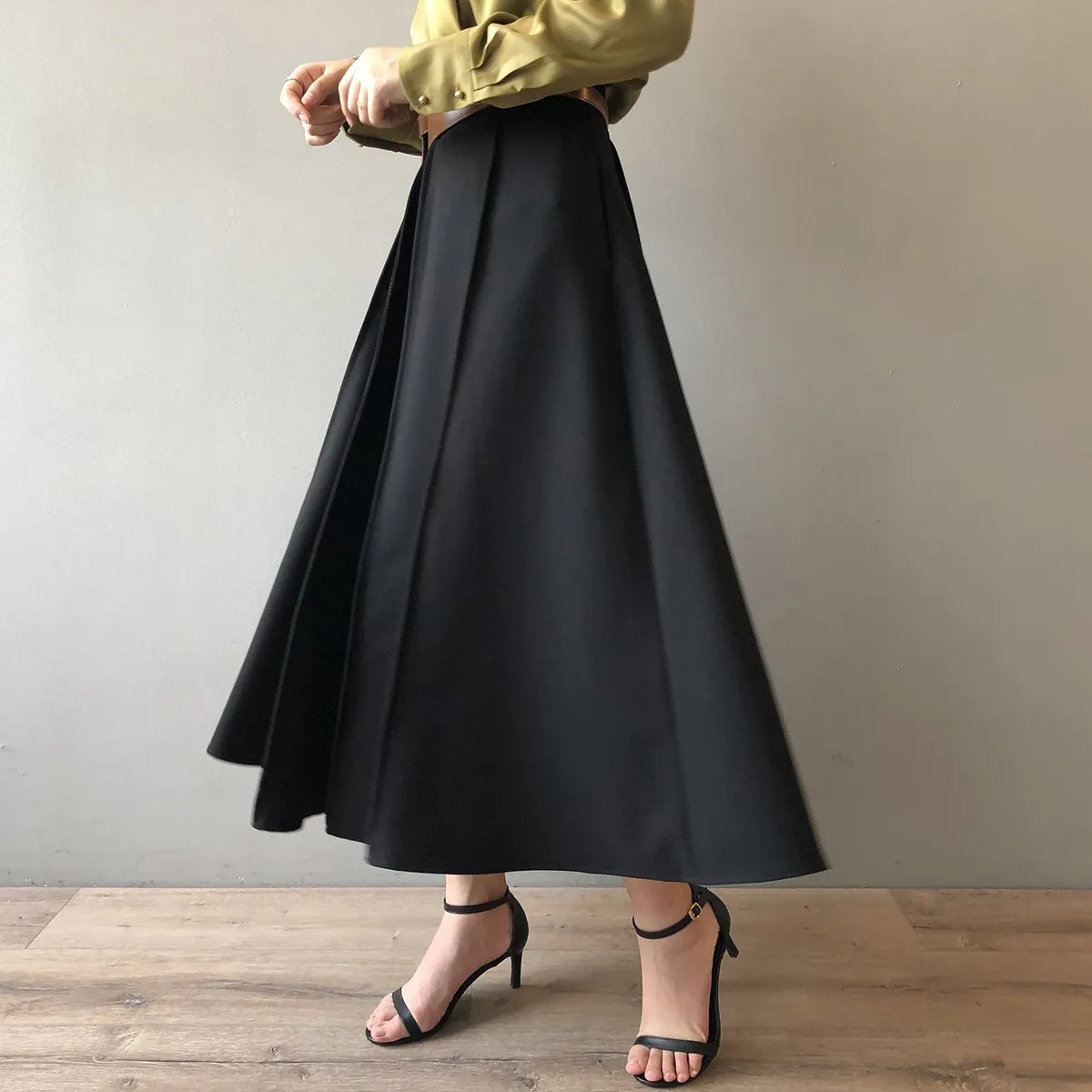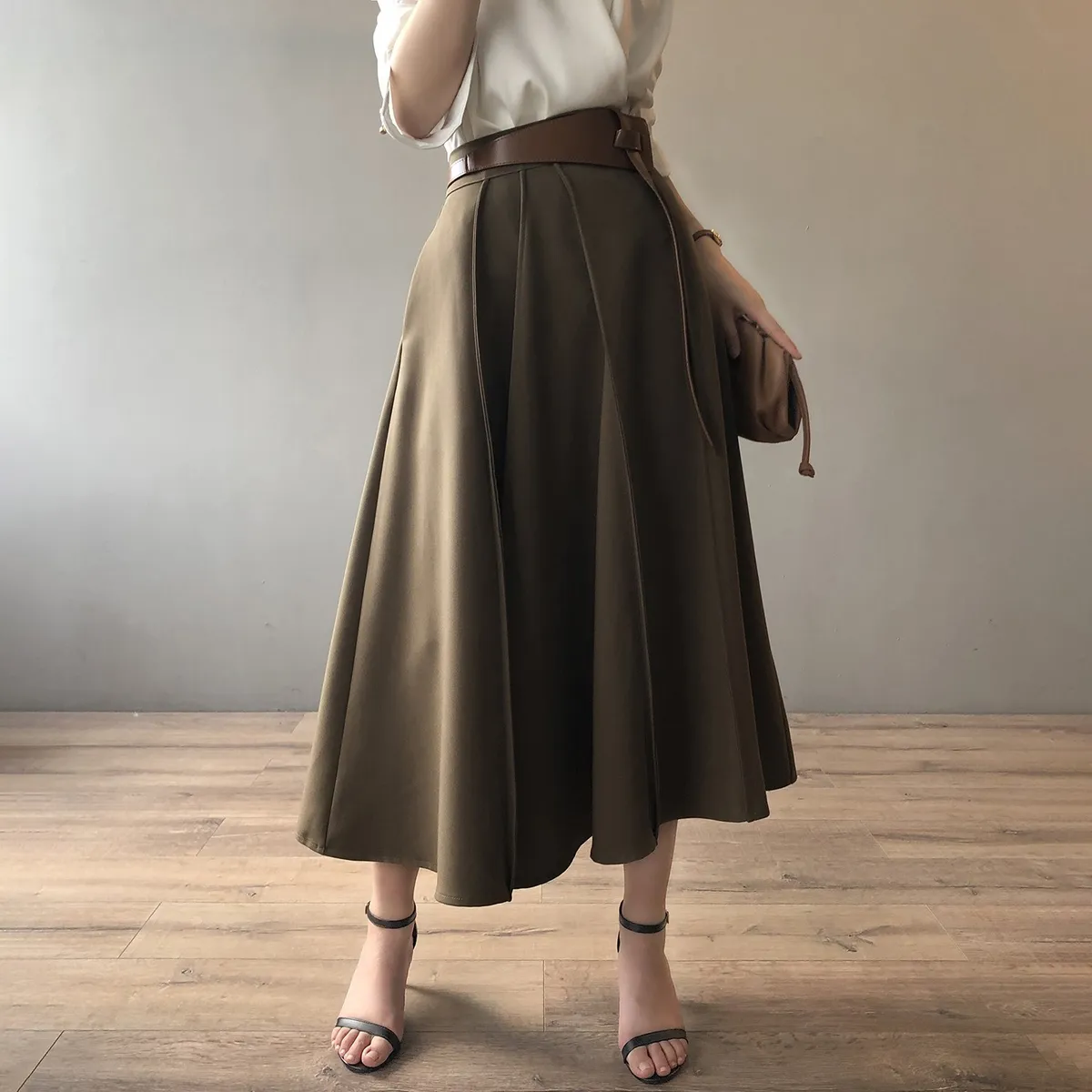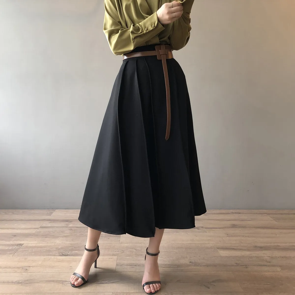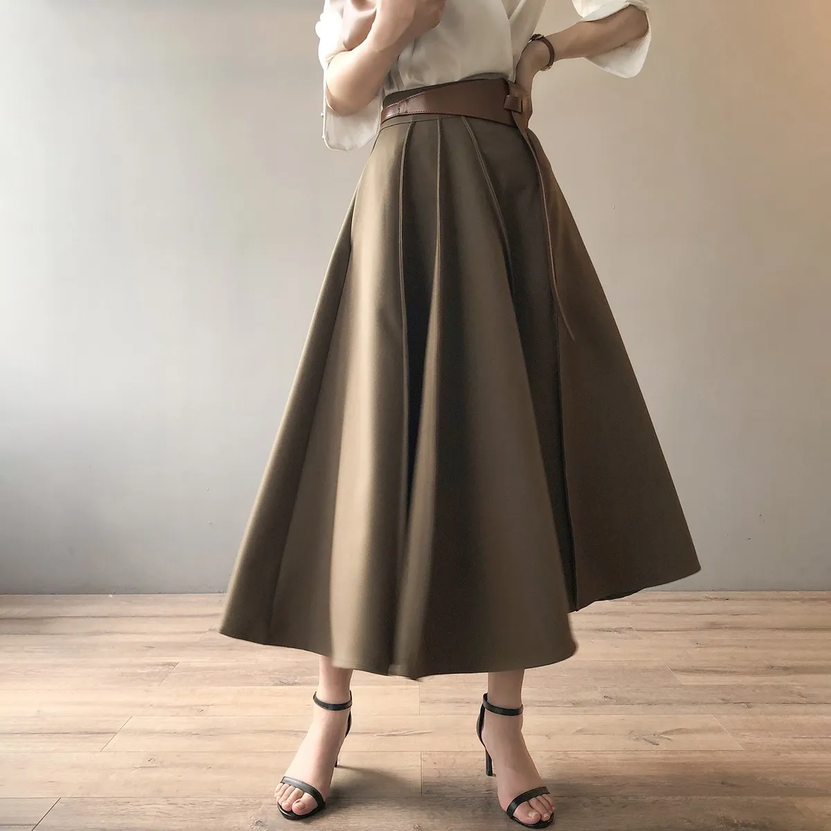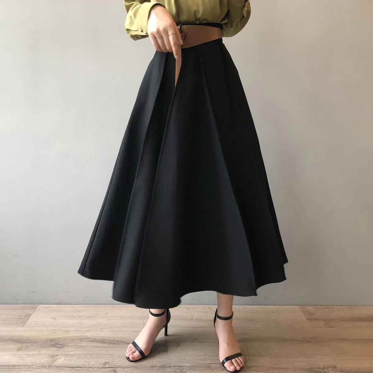 高腰百褶拼接半身裙春夏新款法式赫本風A字裙