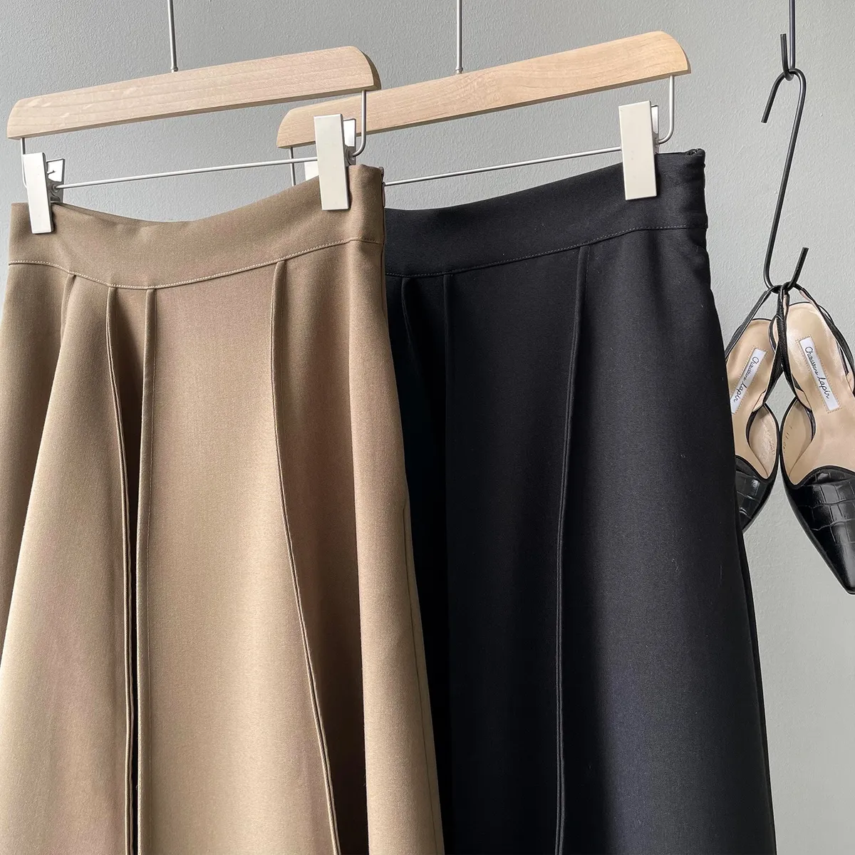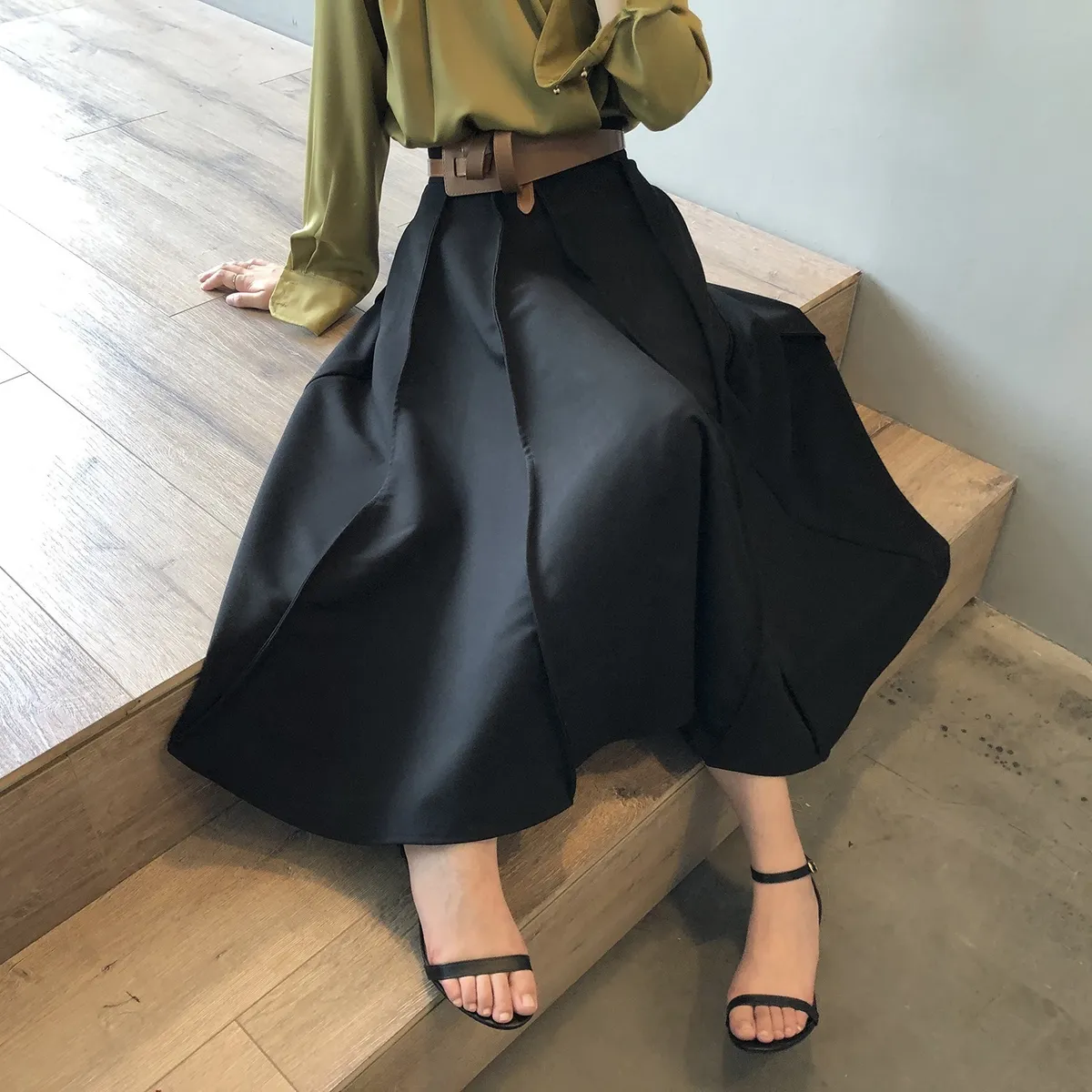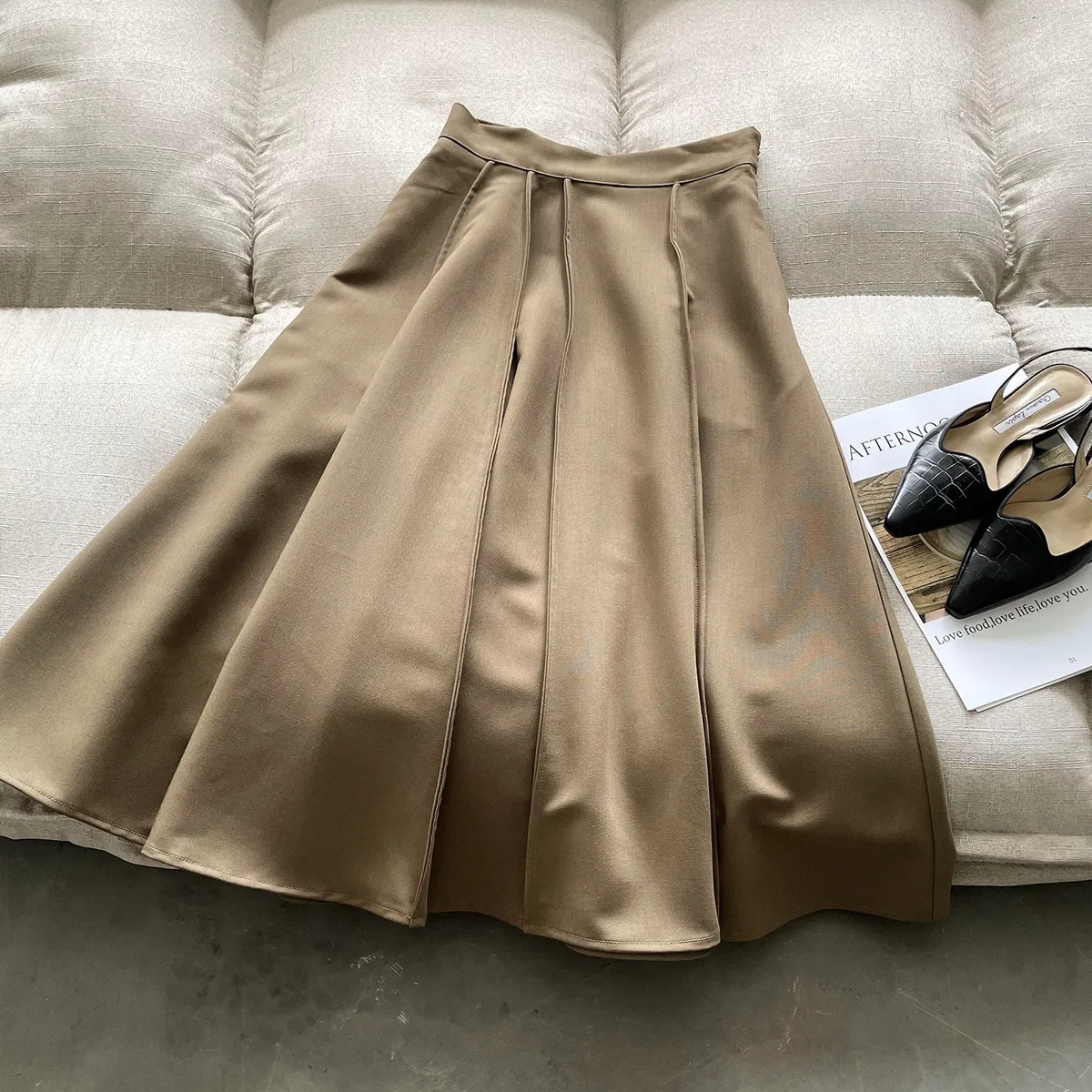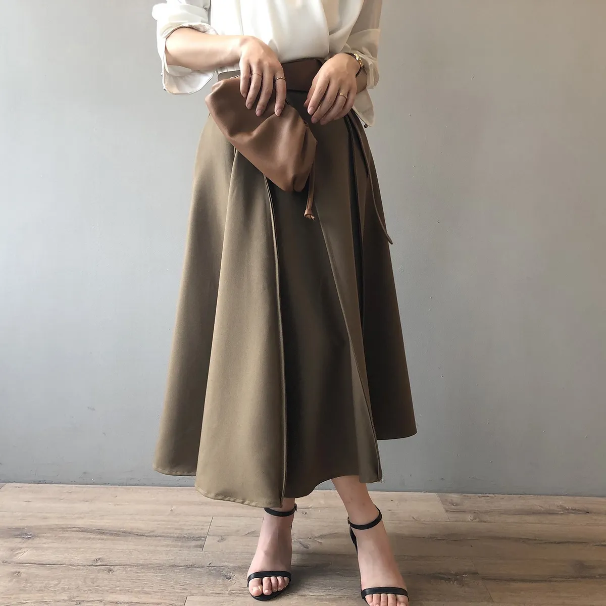 高腰百褶拼接半身裙春夏新款法式赫本風A字裙