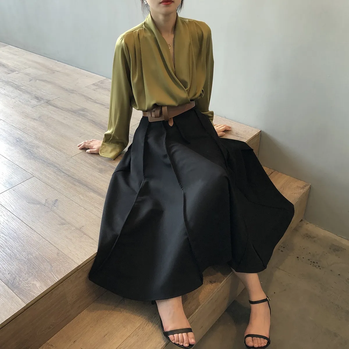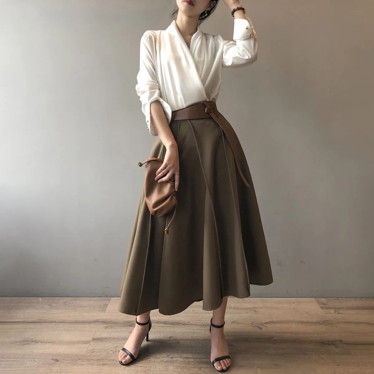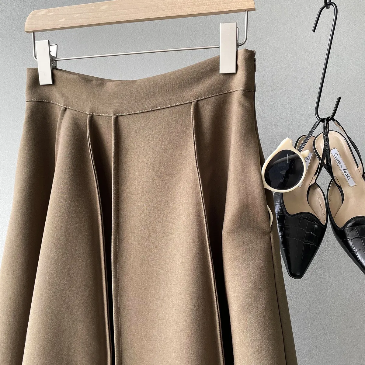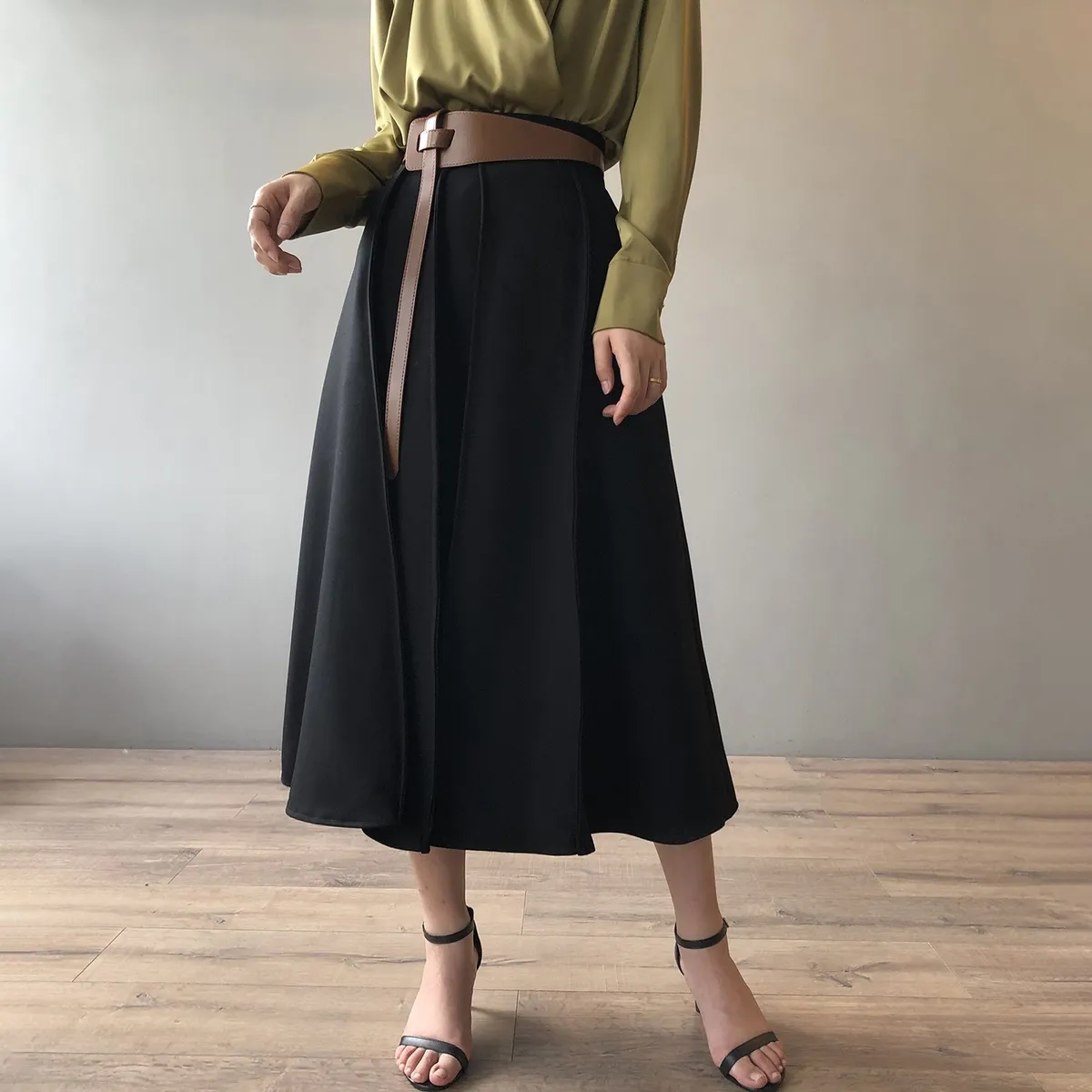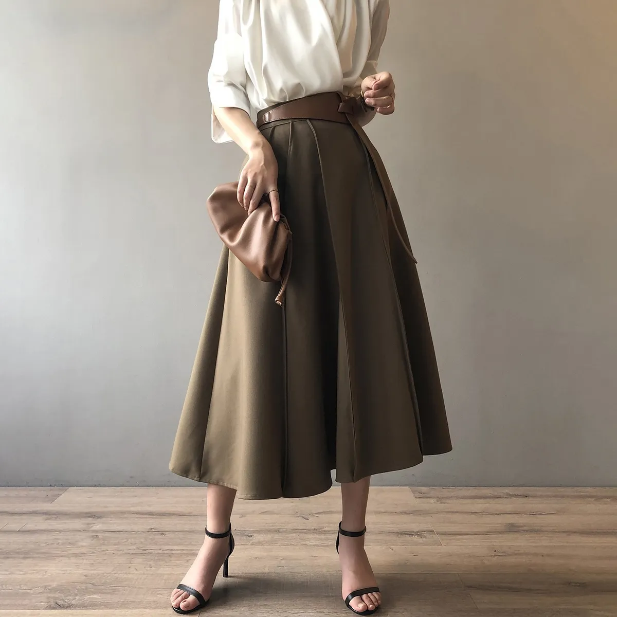 高腰百褶拼接半身裙春夏新款法式赫本風A字裙