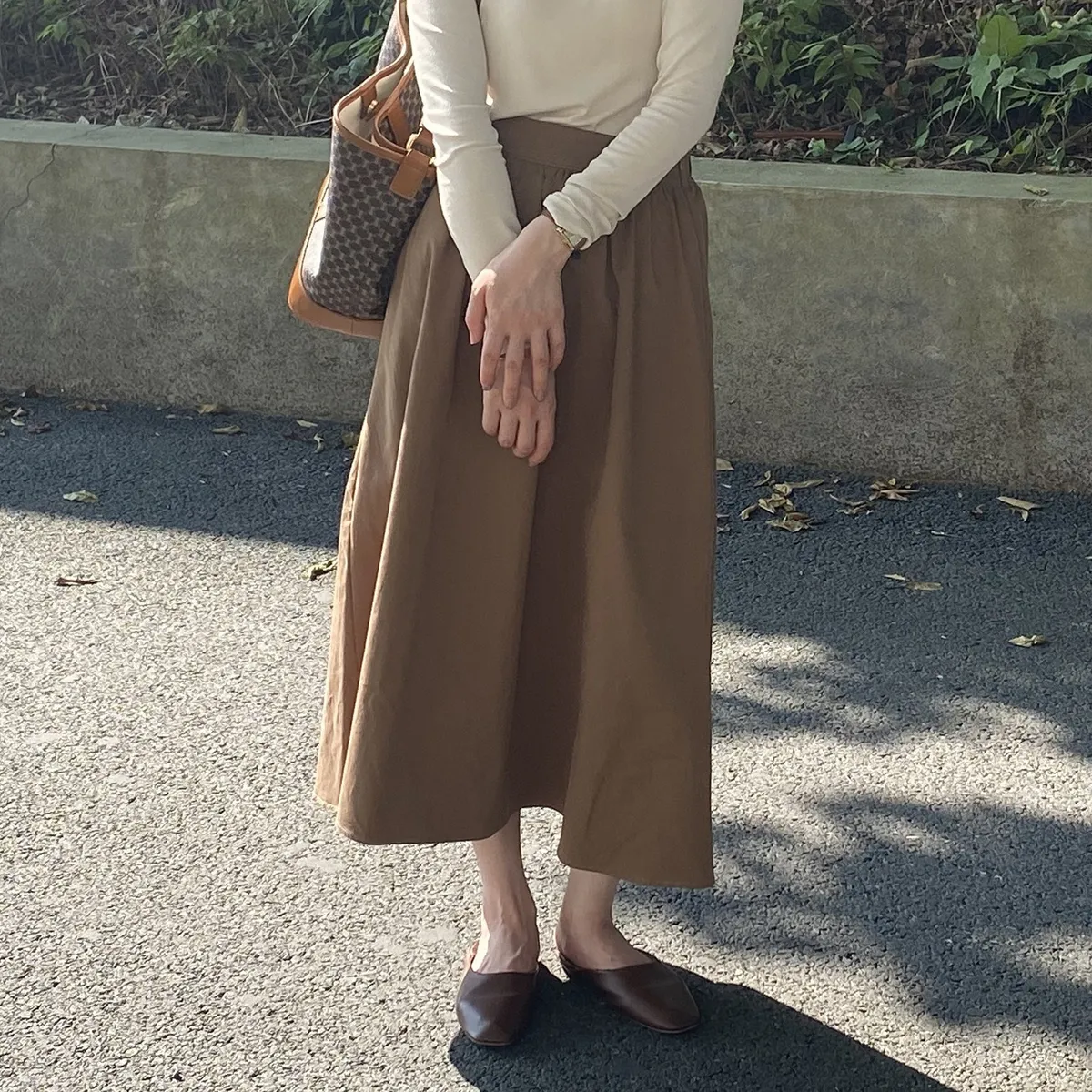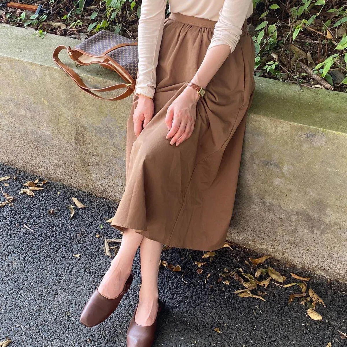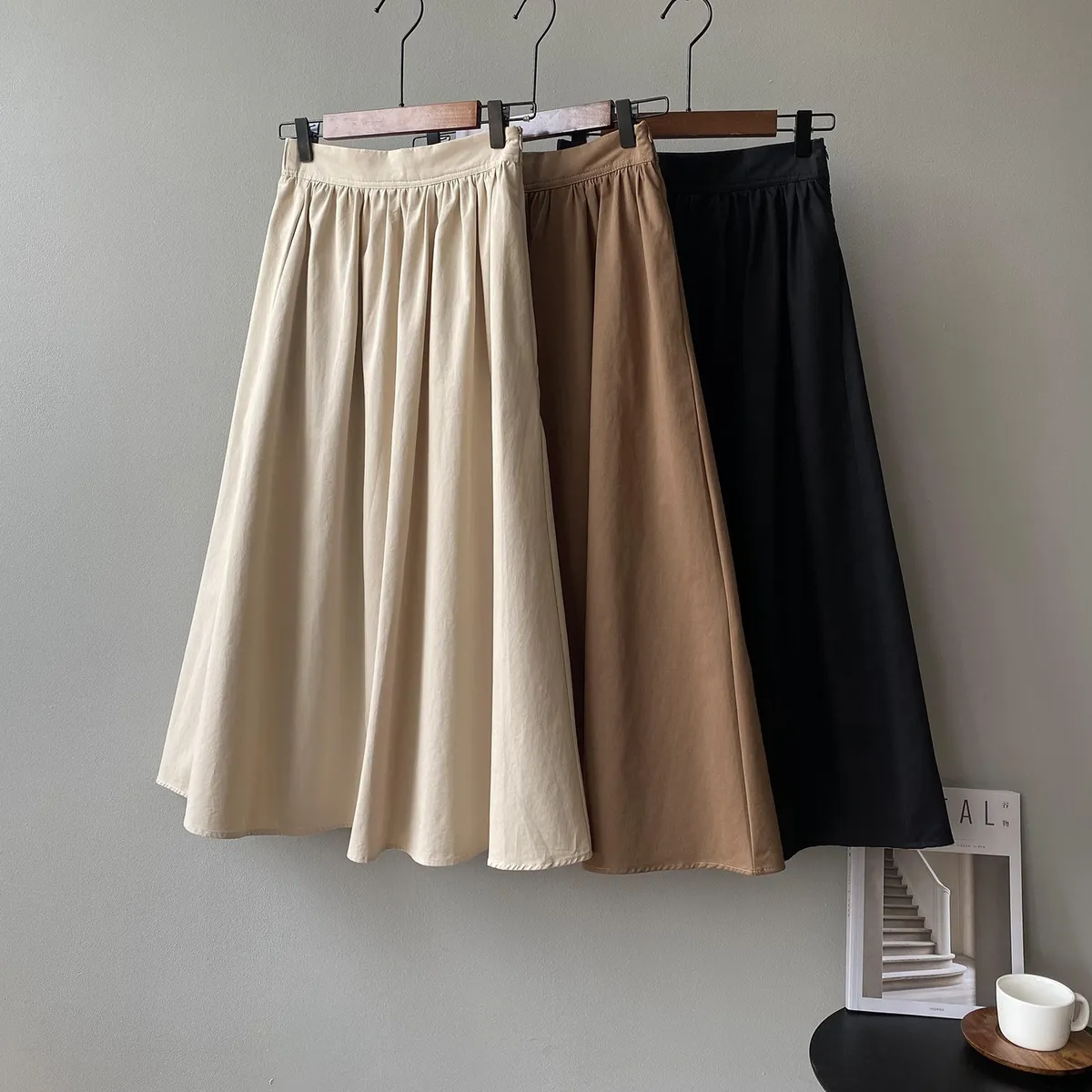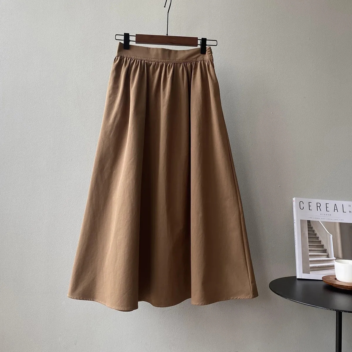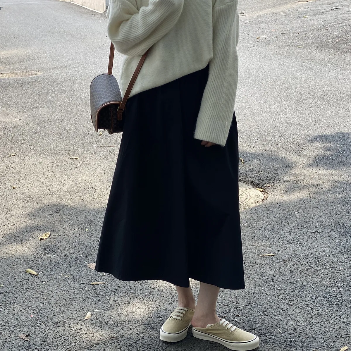 高腰鬆緊半身裙春季新款韓版純色氣質休閒A字裙
