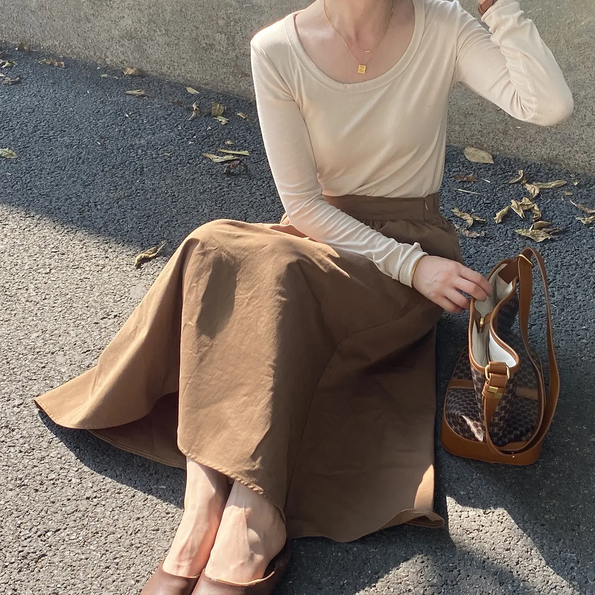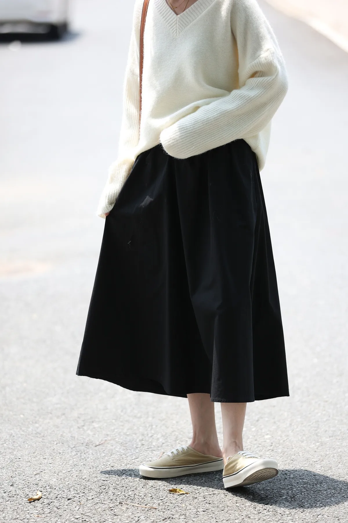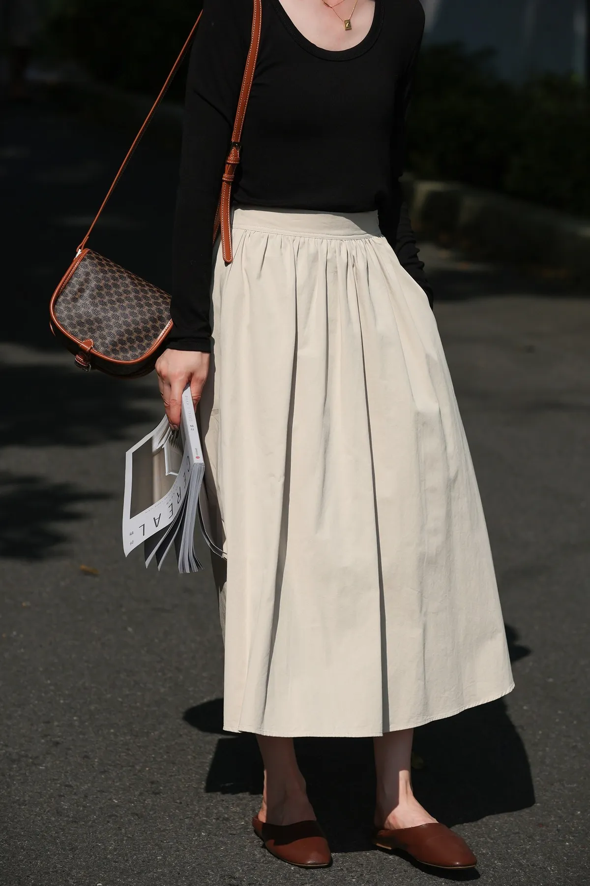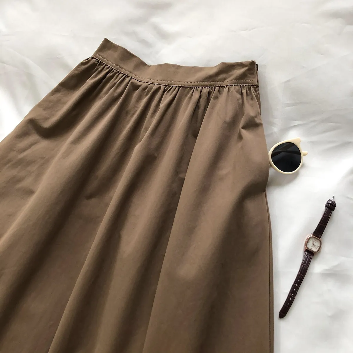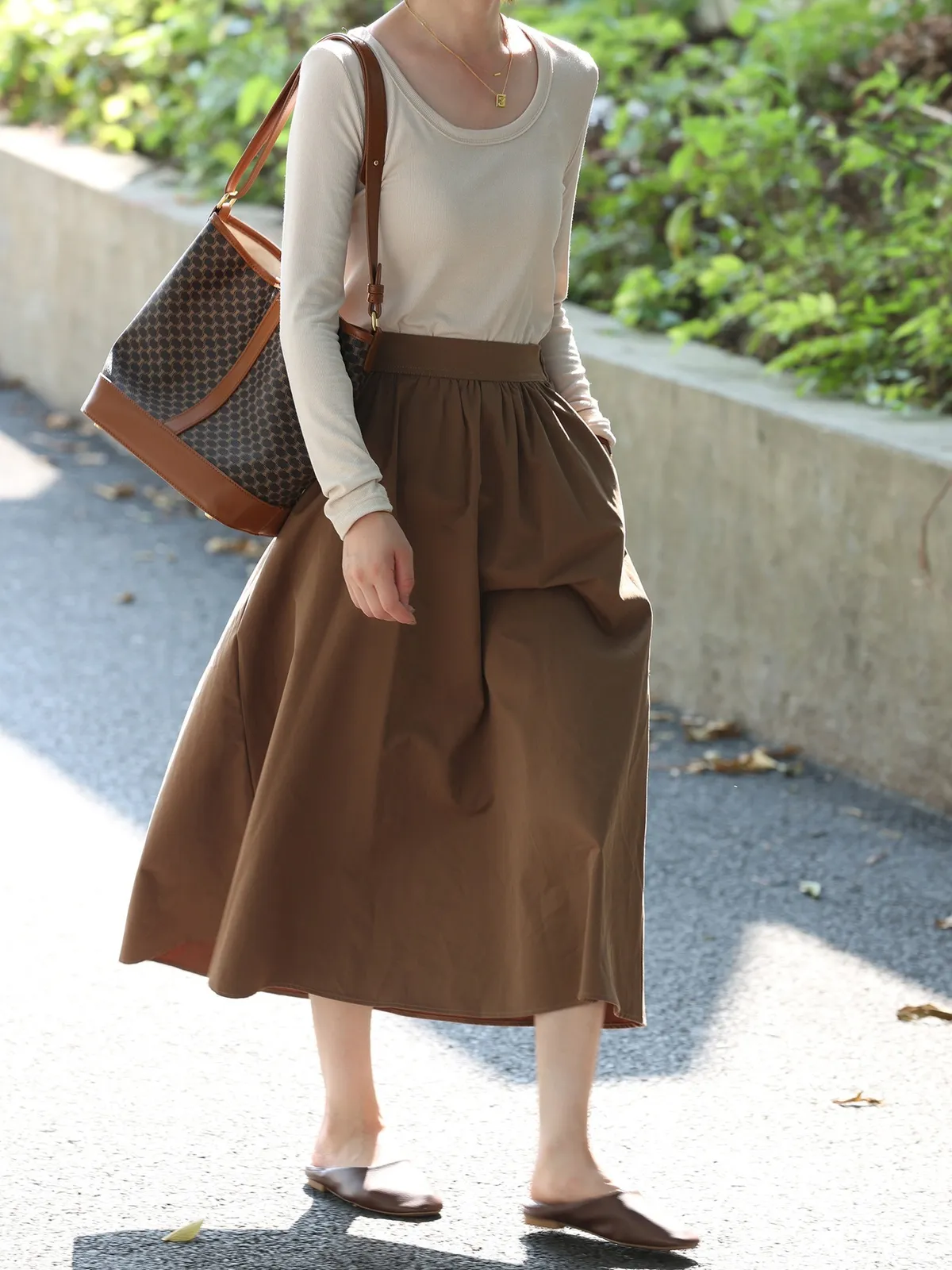 高腰鬆緊半身裙春季新款韓版純色氣質休閒A字裙