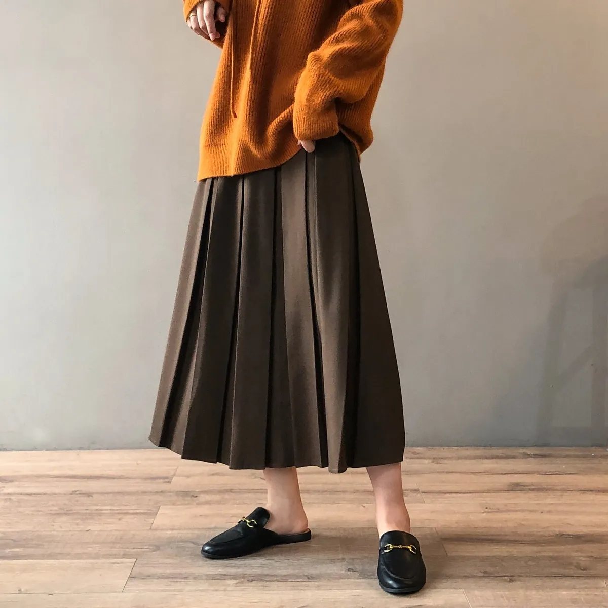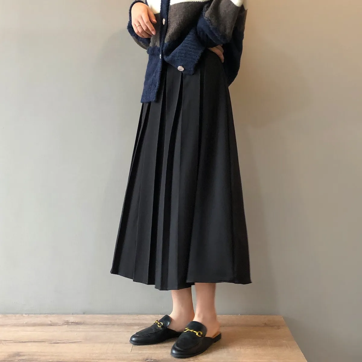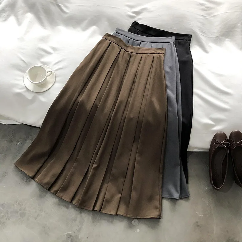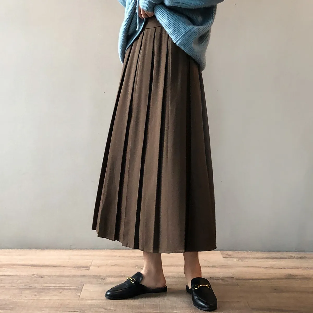 新款韓版高腰半身裙氣質甜美寬鬆中長款百褶裙