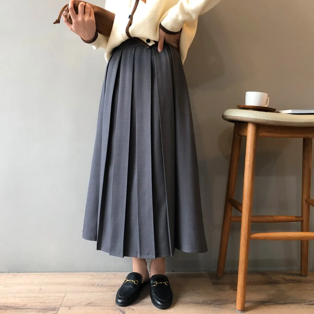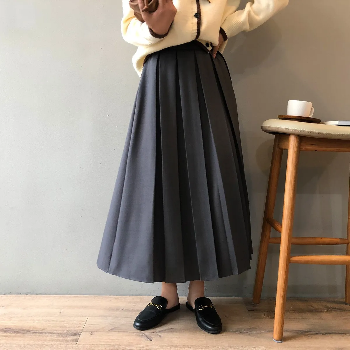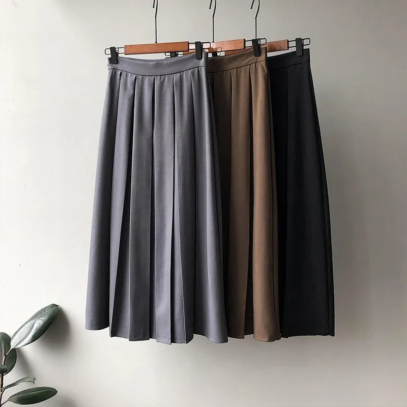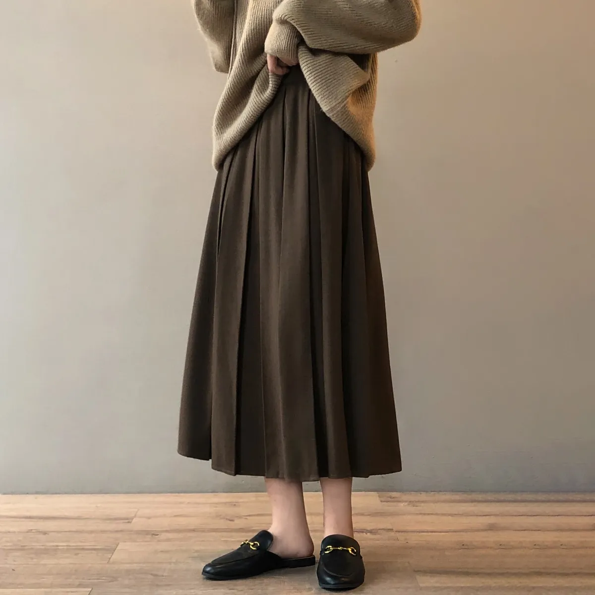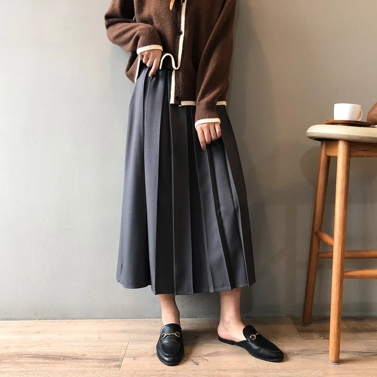新款韓版高腰半身裙氣質甜美寬鬆中長款百褶裙