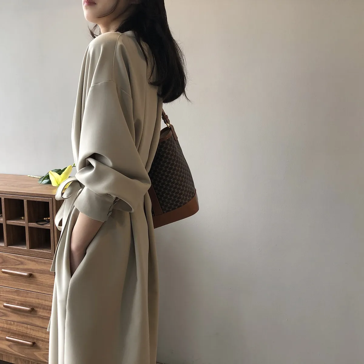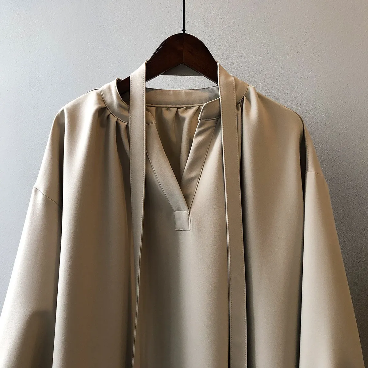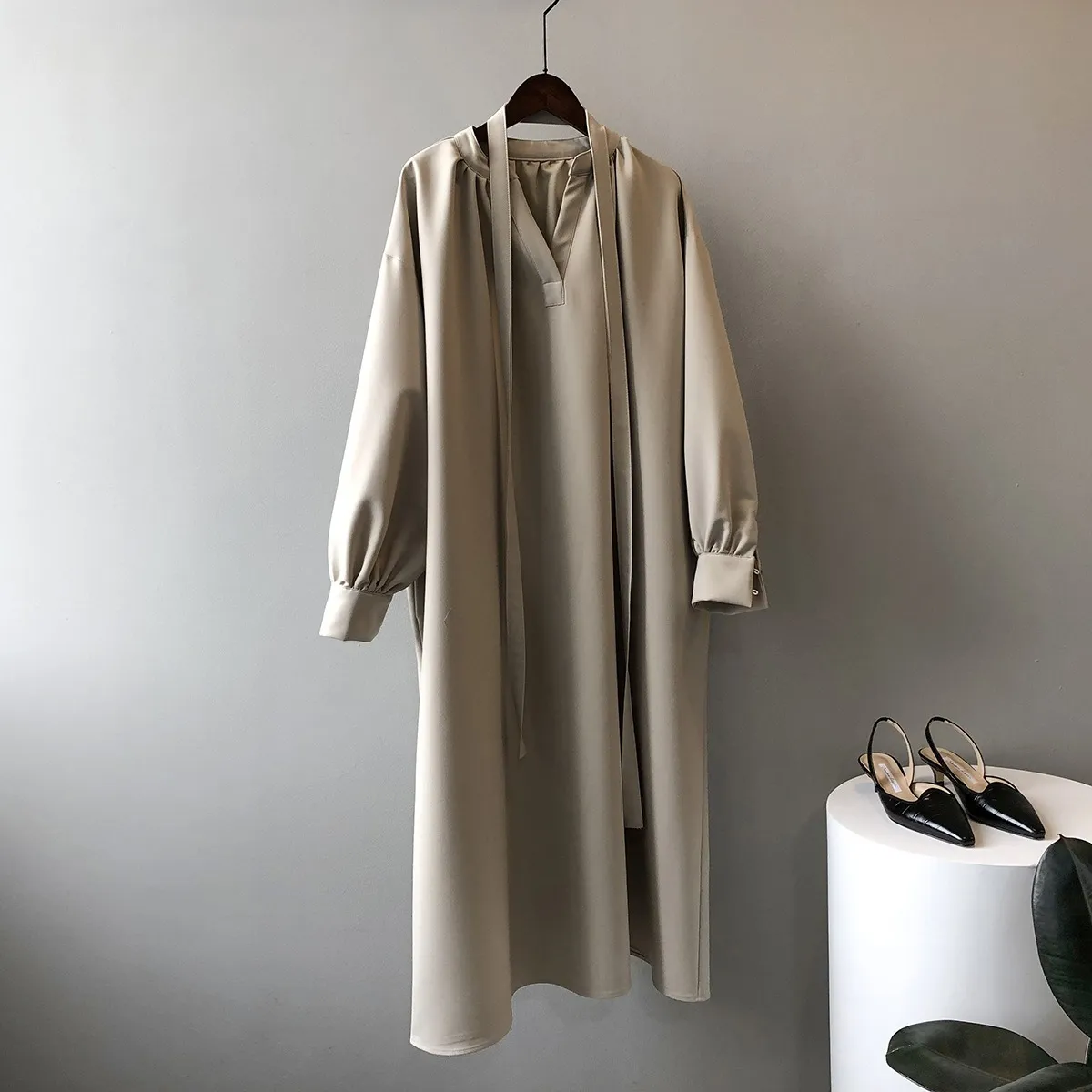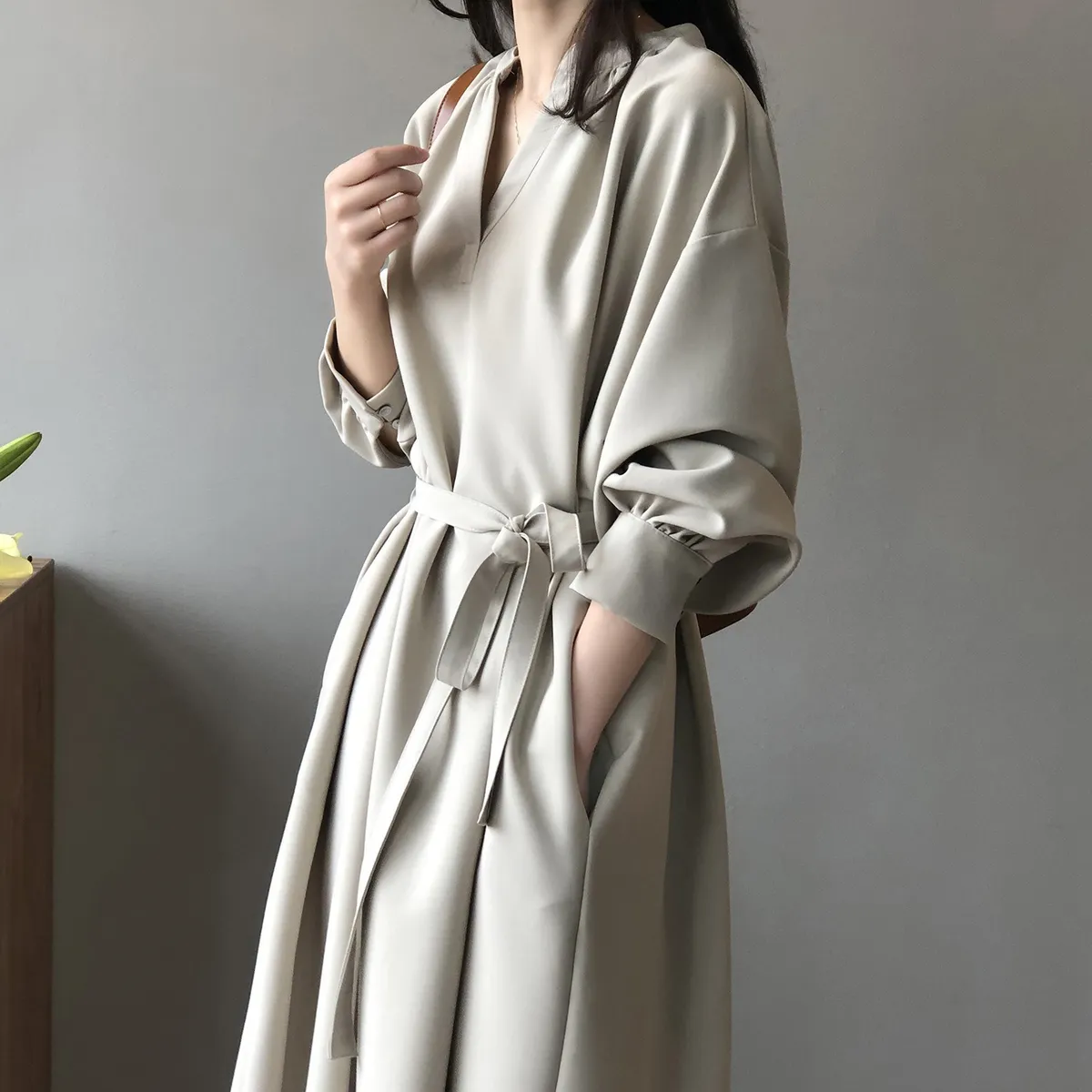 春季V領連衣裙最新韓版寬鬆優雅氣質系帶長款洋裝