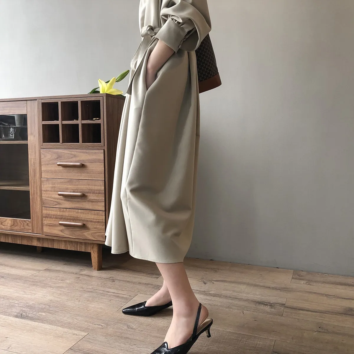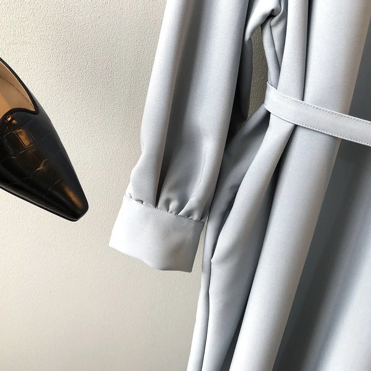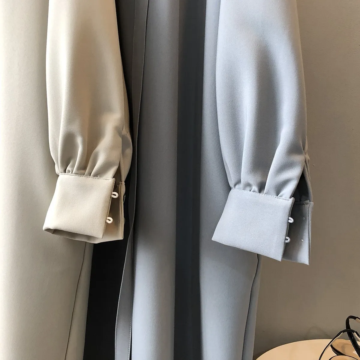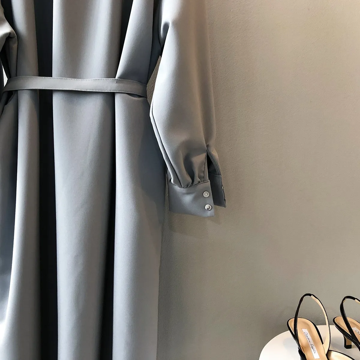 韓版緞面襯衣連衣裙設計感氣質洋裝
