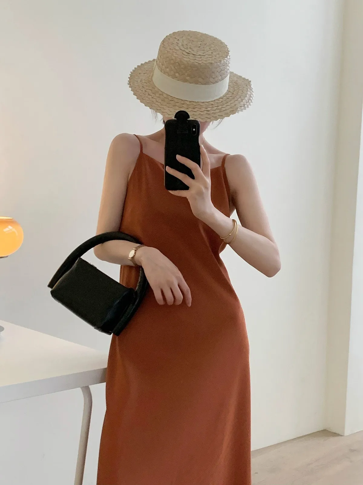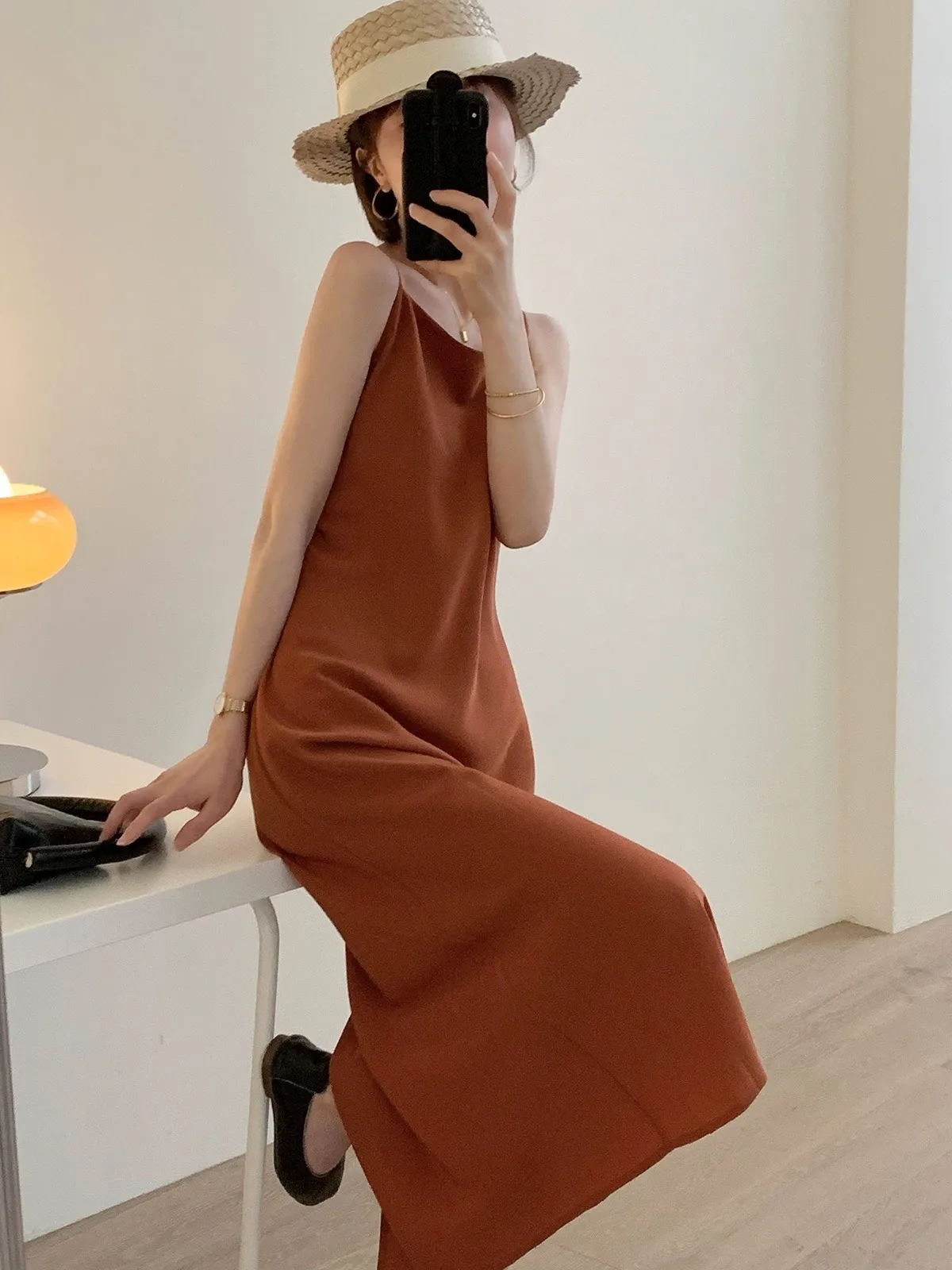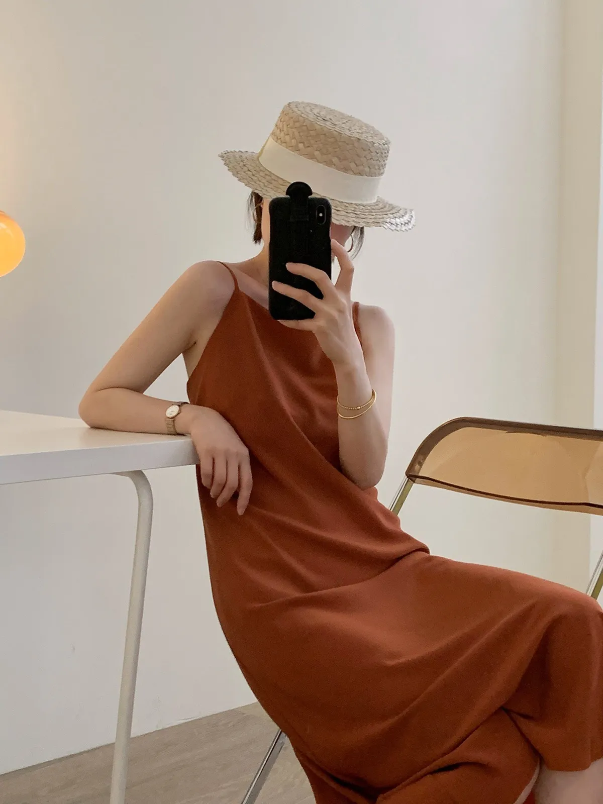 簡約純色吊帶裙 韓版氣質內搭吊帶裙