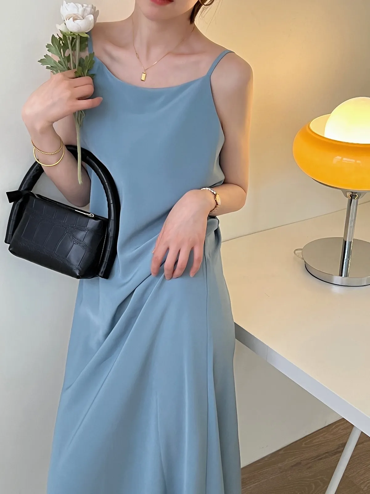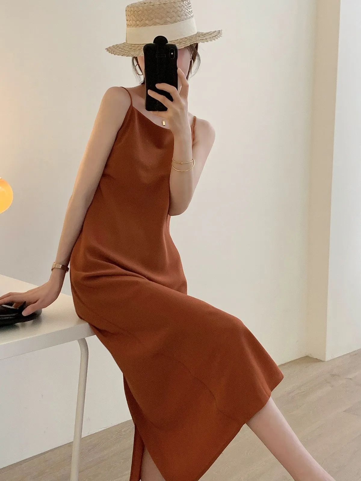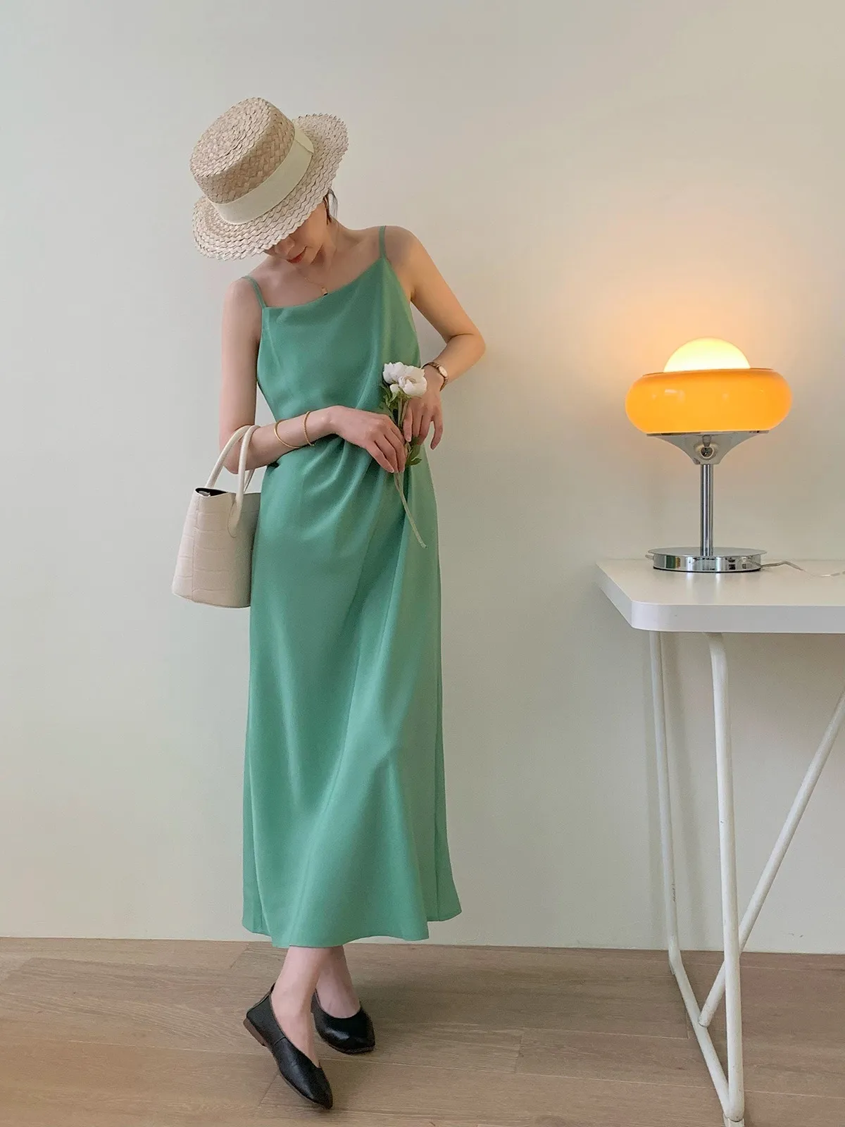 簡約純色吊帶裙 韓版氣質內搭吊帶裙